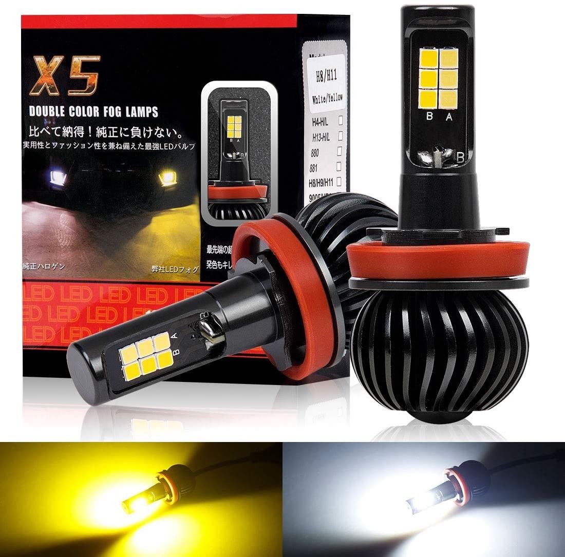 Amazon Bordan 2色切り替え H8 H11 H16 Led フォグランプ ヘッドライト兼用 イエロー3000k ホワイト6000k デフォルトホワイト 30w 8000lm 超高輝度csp社製チップ採用 Led フォグライト 車用 Ledバルブ 無極性 2個セット 1年保証付き フォグランプ 車 バイク
